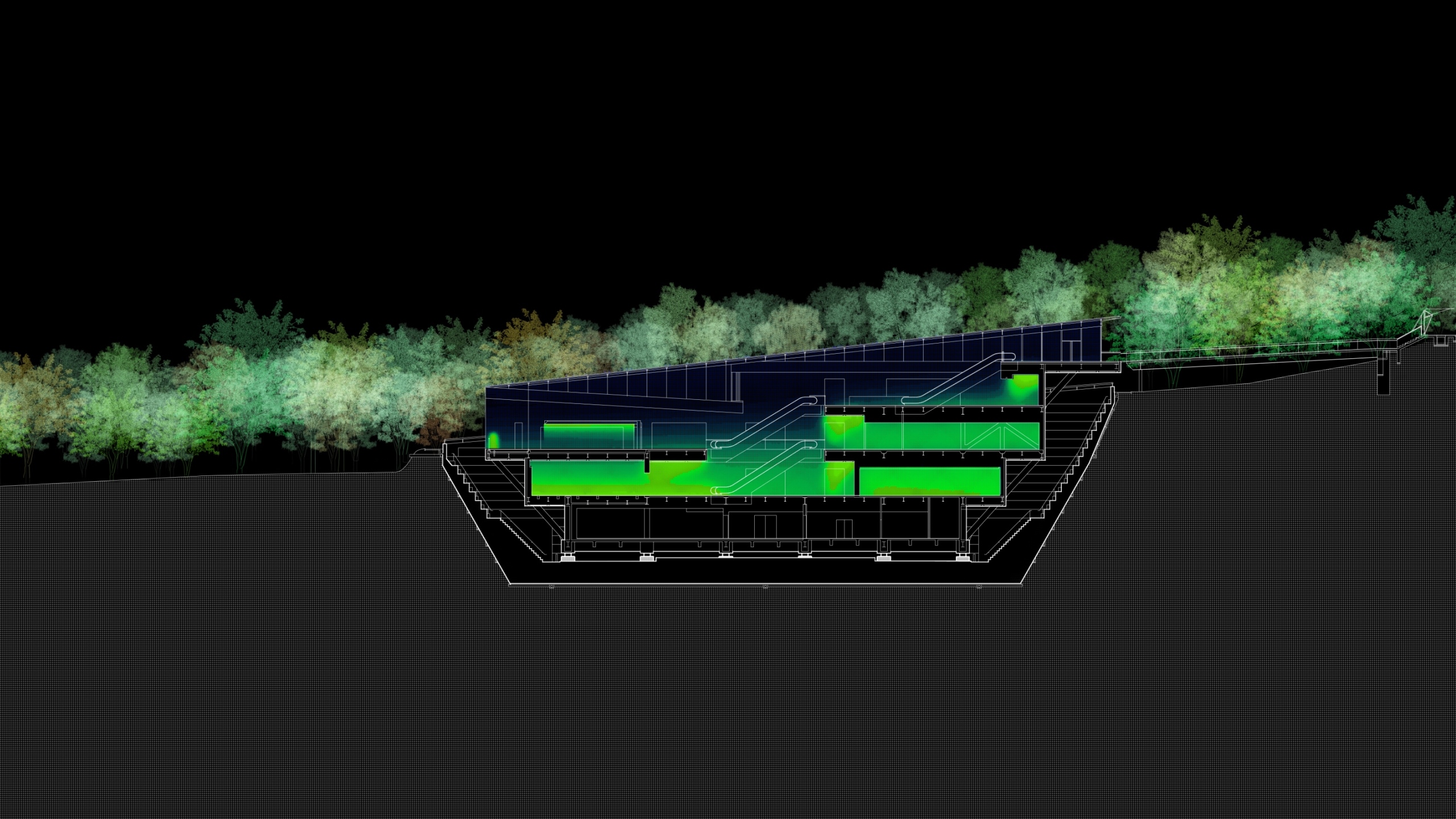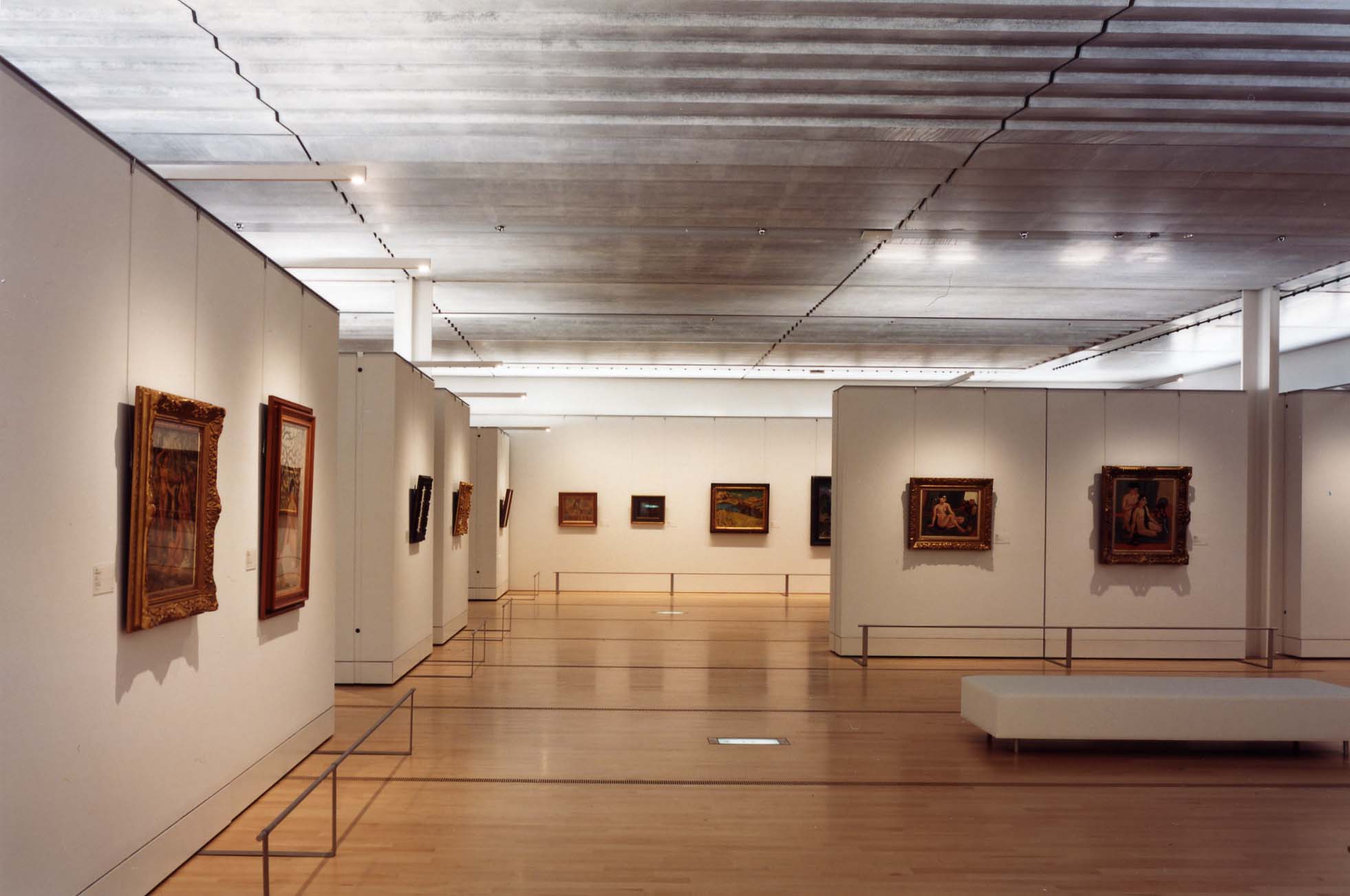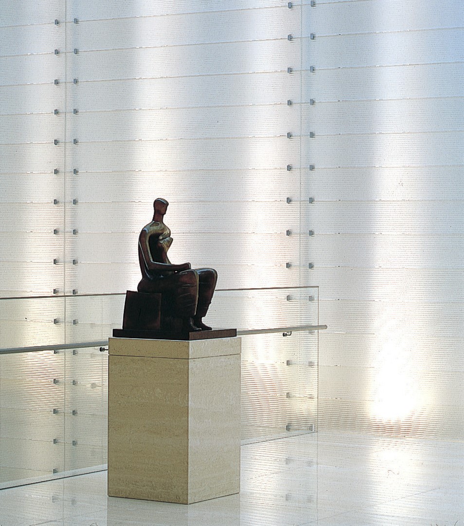 Nestled in a forest, this art museum exhibits and houses a huge number of works of art, focusing on impressionist paintings. Owing to its location deep within the forest of a national park, consideration was given to achieving coexistence with nature without harming the beauty of the surrounding environment. The majority of the building is underground, and the central lobby of the museum is a bright space, with natural light streaming in from the skylight in the atrium four floors above.